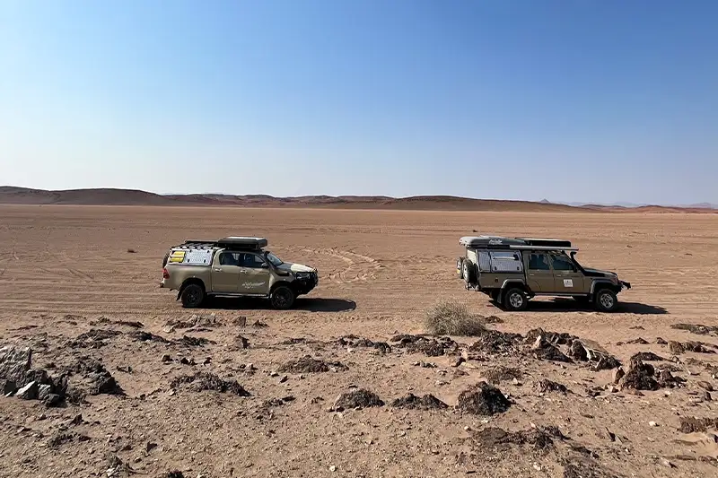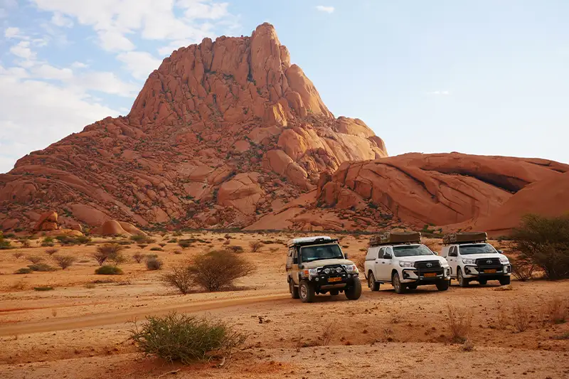 Unsere Route führt Sie tief in das Herz des Damaralands und Kaokolands – mit ausgedehnten Offroad-Passagen durch spektakuläre Wüstenlandschaften, felsige Täler und entlegene Gebiete. Der absolute Höhepunkt: die Durchquerung des legendären Van Zyl’s Pass: eine der spektakulärsten und anspruchsvollsten Offroad-Strecken Afrikas. Doch keine Sorge, Ihr erfahrener Guide begleitet Sie Schritt für Schritt und unterstützt Sie dabei, auch schwierige Passagen sicher zu meistern. Offroad-Vorkenntnisse sind nicht erforderlich, was zählt, ist Ihr Abenteuergeist!