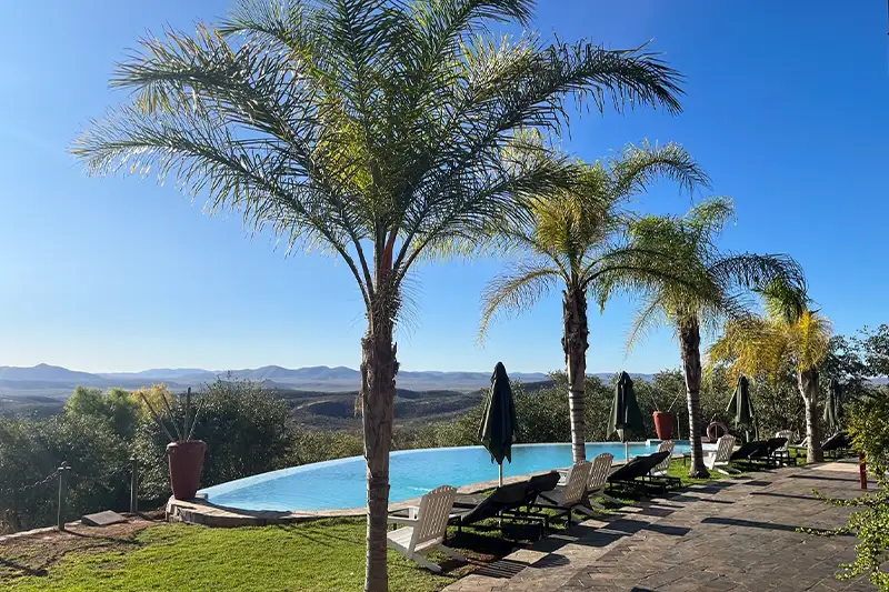 Unsere traumhafte Unterkunft befindet sich auf einem Hügel mit herrlichem Blick über Opuwo. Wir werden auf dem Campingplatz der Lodge übernachten, aber es besteht auch die Möglichkeit, ein Zimmer zu buchen. Bitte teilen Sie uns bei der Anmeldung der Tour mit, wenn Sie ein Upgrade auf ein Zimmer wünschen. Das gemeinsame Abendessen wird im Lodgerestaurant serviert.