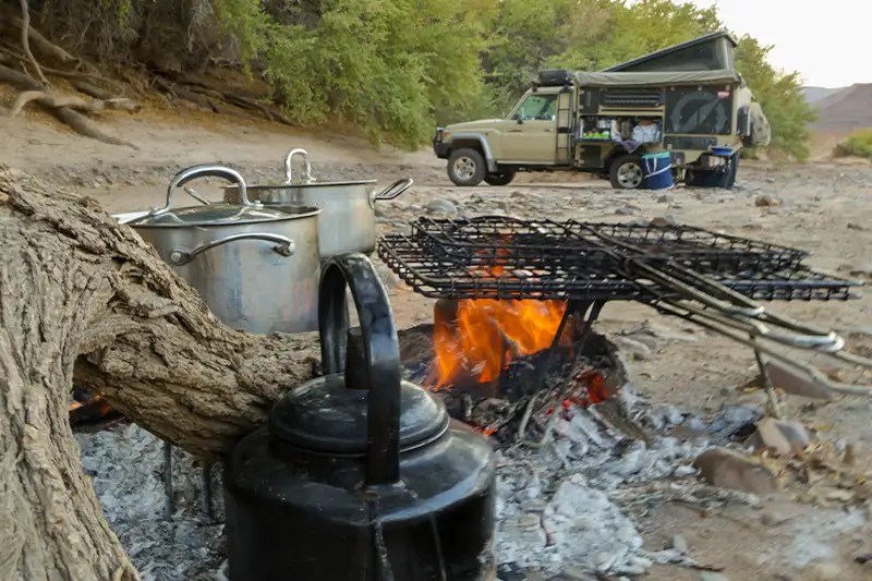 Auch in unseren Wild Camps müssen Sie nicht auf Annehmlichkeiten verzichten: Eine warme Dusche aus der mobilen Duschkabine, ein Toilettenstuhl für das Busch-WC und liebevoll zubereitete Mahlzeiten am Lagerfeuer sorgen für eine komfortable Wildniserfahrung. Freuen Sie sich auf eine intensive Naturerfahrung mit eindrucksvollen Landschaften, faszinierender Geologie und mit etwas Glück Sichtungen von Wüstenelefanten, Giraffen, Antilopen, Spitzmaulnashörnern und Löwen.